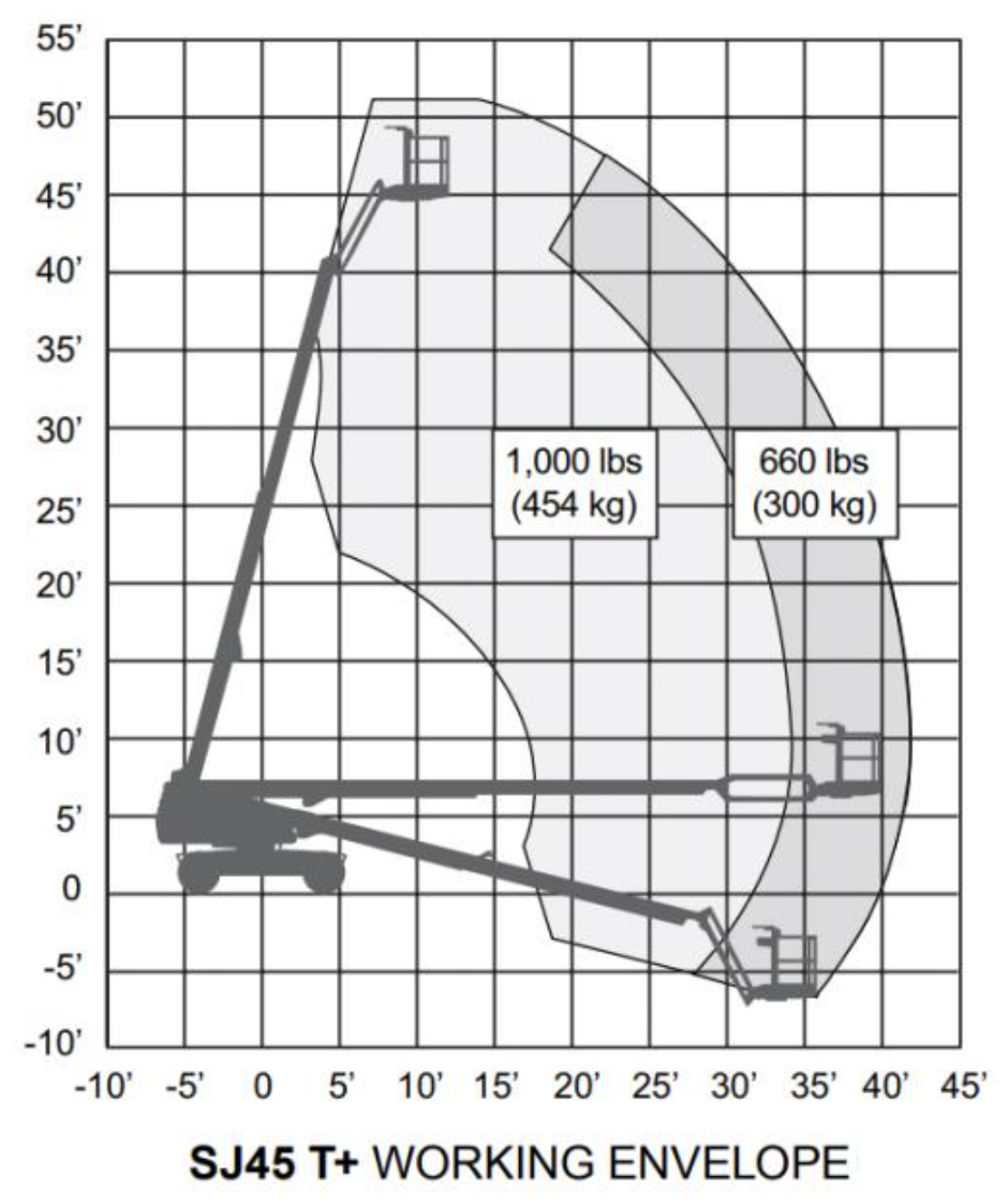 Working Range of Telescopic Boom Lift SJ45T+