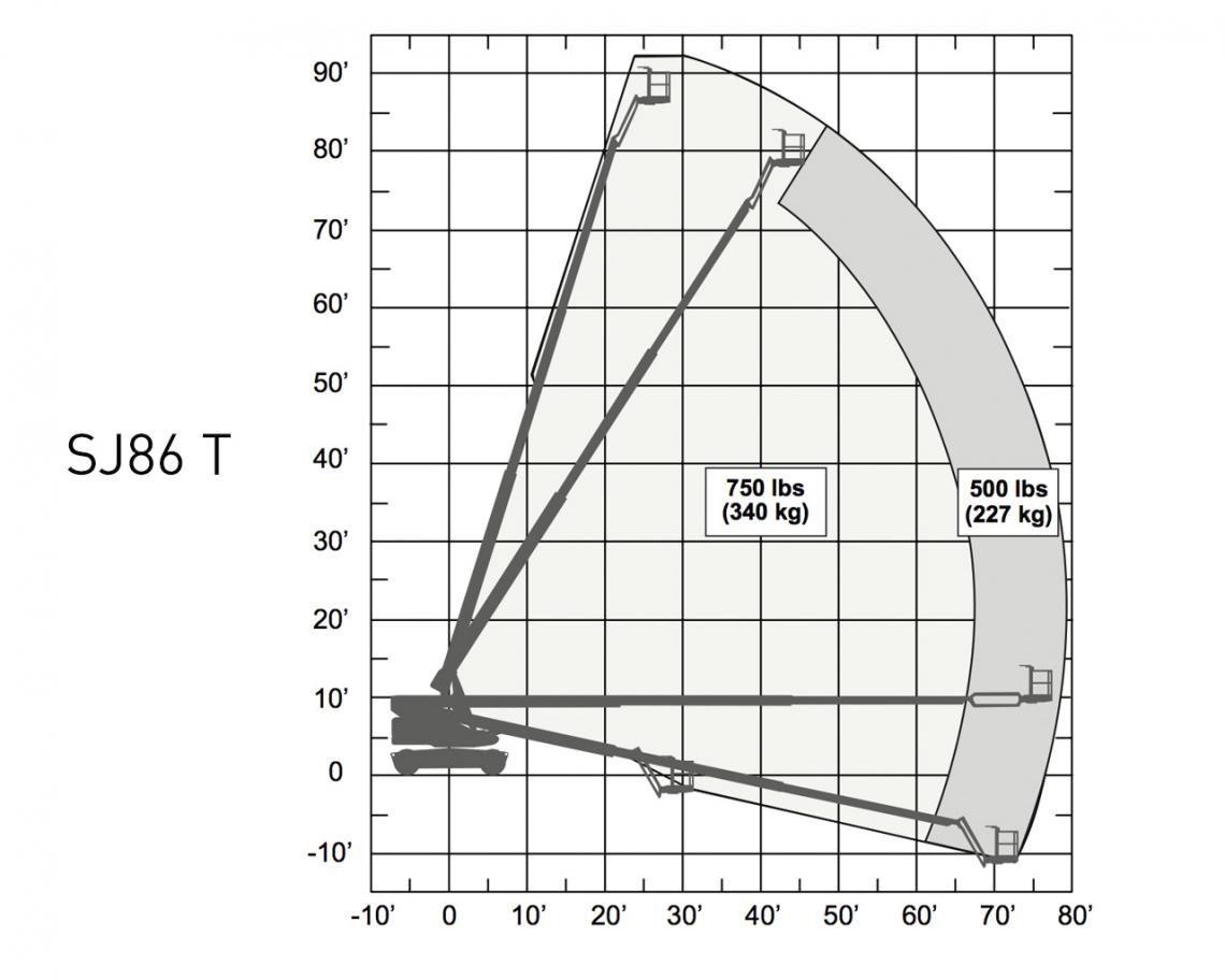 Working Range of Telescopic Boom Lift SJ86T