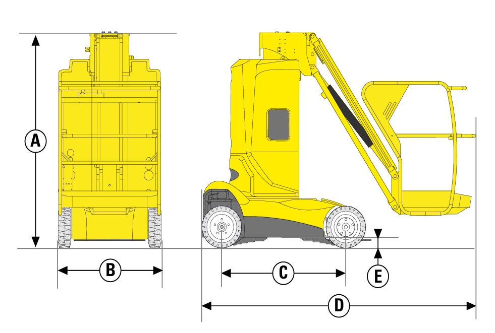 - Narrow turning radius with 3m outreach, allowing operators to reach difficult working spots at height.