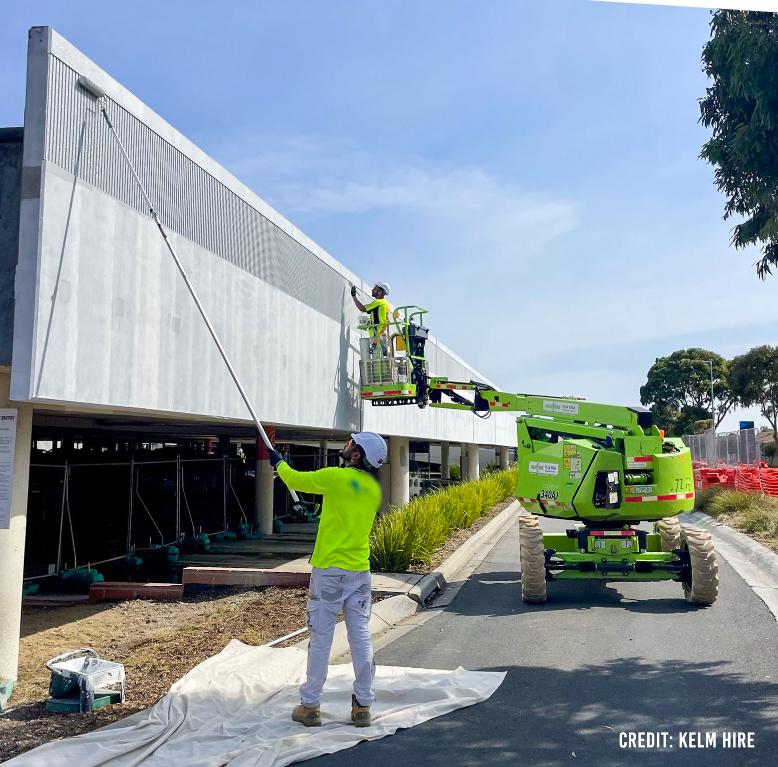 Image: Using the Diesel Boom Lift 340AJ for painting the exterior of a house.