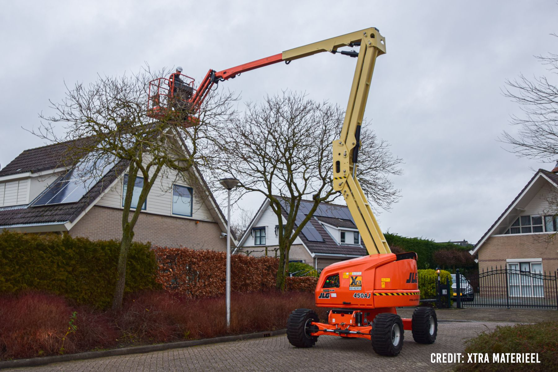 Image: Using the Boom Lift 450AJ for cutting back trees at height (Credit: Xtra Materieel)