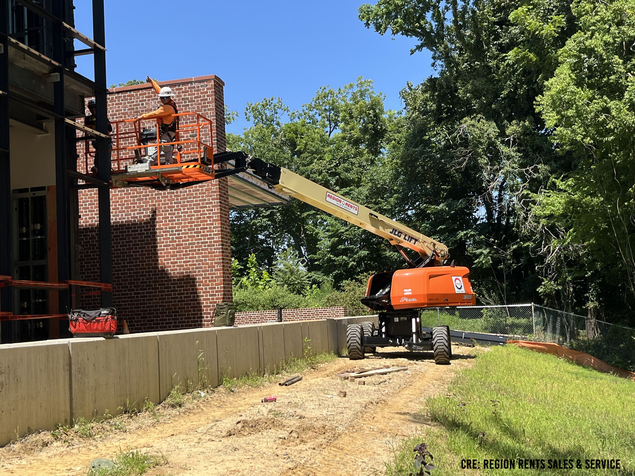Image: Using Telescopic Boom Lift 670SJ for exterior construction work. (Credit: Region Rents Sales & Service)