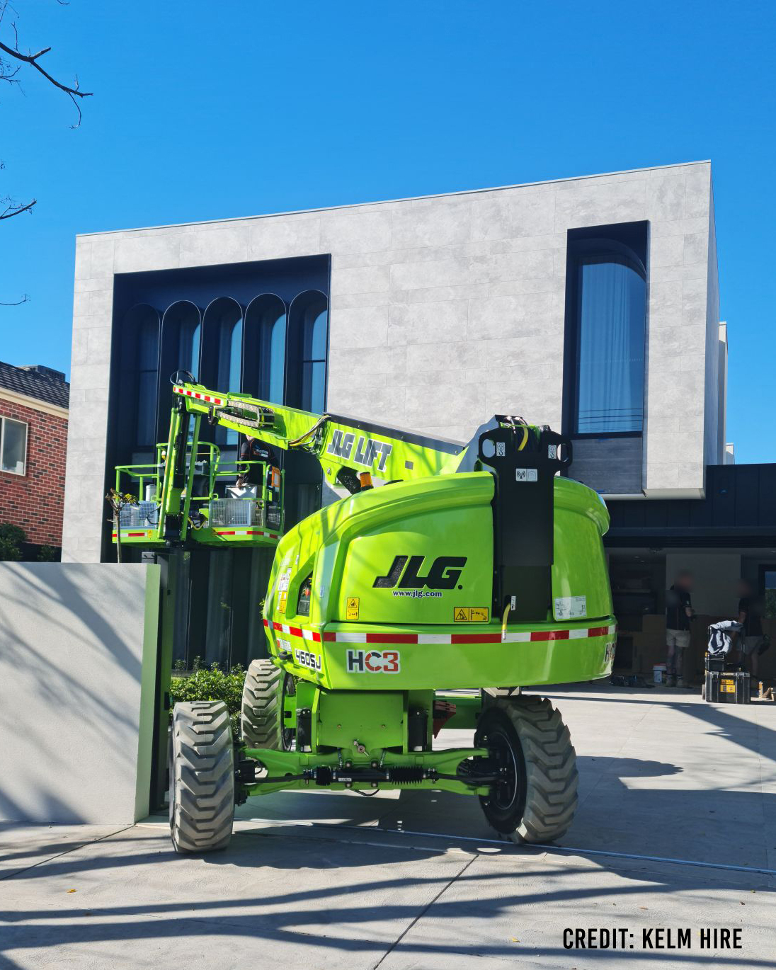 Image: Using Telescopic Boom Lift 460SJ HC3 for exterior maintenance of a house (Cre: Kelm Hire)