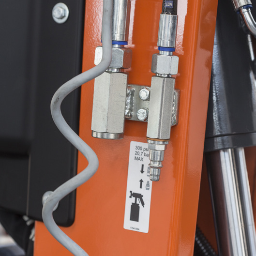 - Air and water line hookups at the base of the machine supply to the platform for jobs such as window-washing or general maintenance/construction tasks that require the use of air-powered tools.