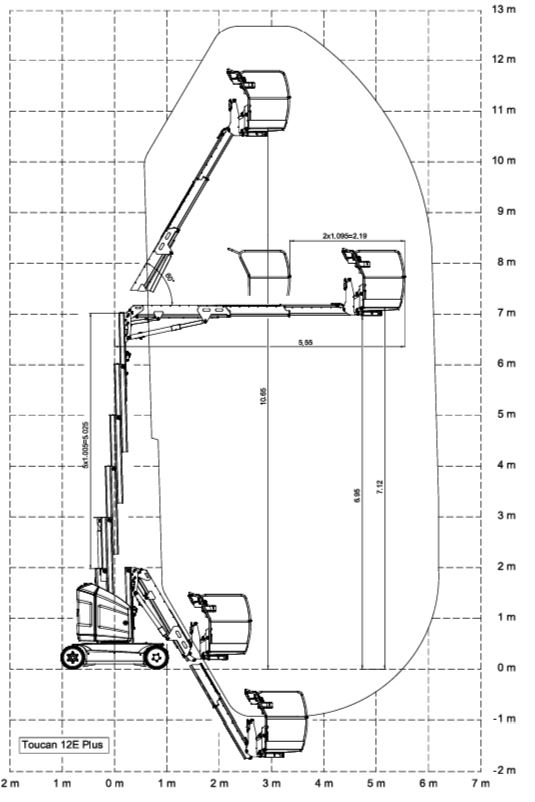 Working Range of Toucan Vertical Mast Boom Lift T12E Plus