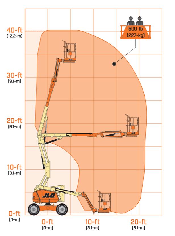 Phạm vi làm việc của Xe Nâng Người Boom Lift Cần Gập 340AJ