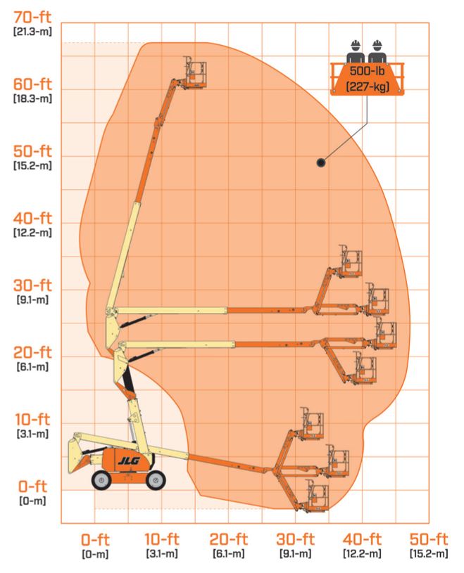 Phạm vi làm việc của Xe Nâng Người Boom Lift Cần Gập 600AJ