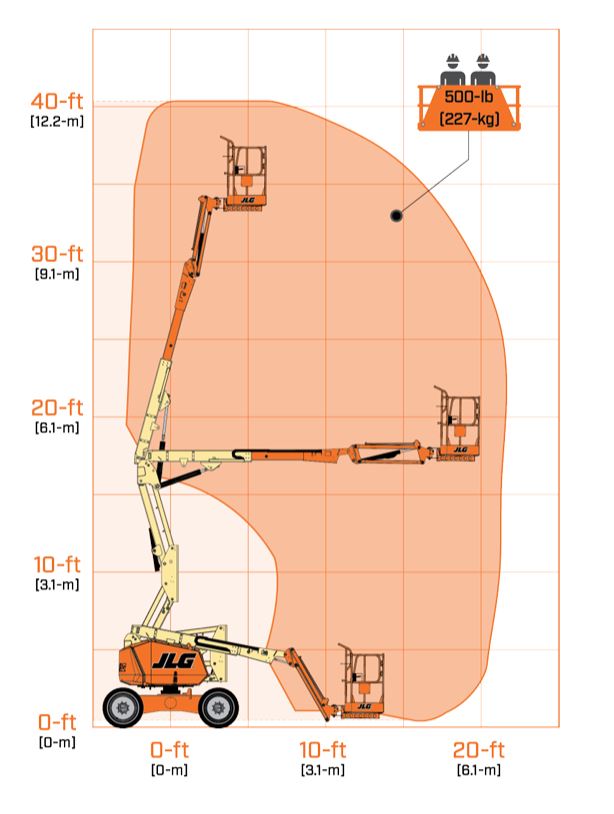 Phạm vi làm việc của Xe Nâng Người Boom Lift Cần Gập H340AJ