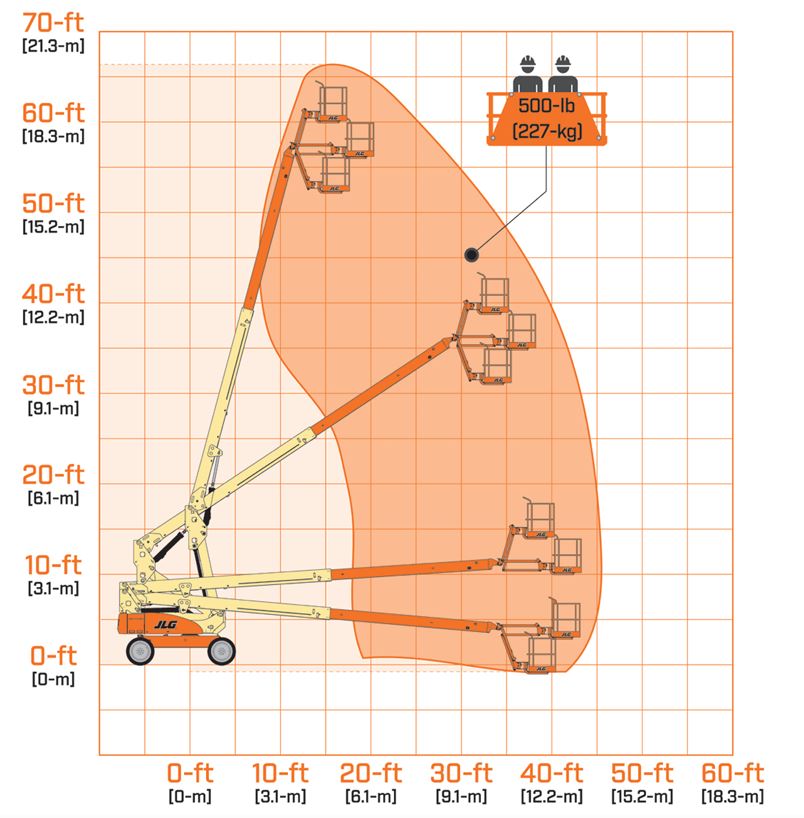 Phạm vi làm việc của Xe Nâng Người Boom Lift Cần Thẳng H600SJ