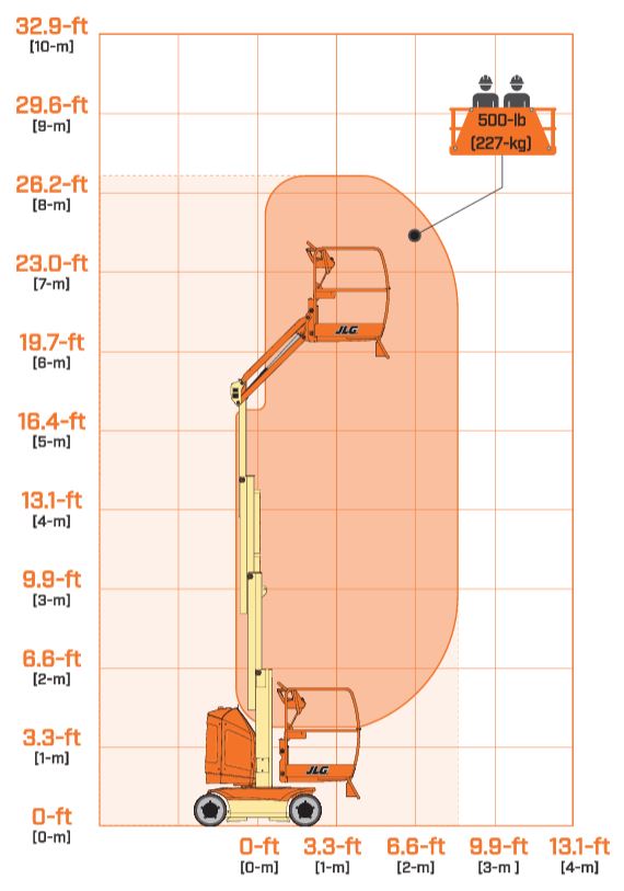 Phạm vi làm việc của Xe Nâng Người Trục Đứng Cần Xoay T8E