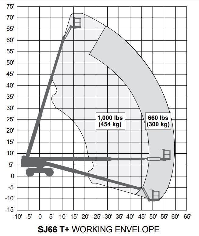 Phạm vi làm việc của Xe Nâng Người Cần Thẳng SJ66T+